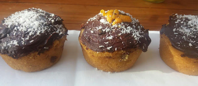 Cup cake de cenoura e coco com creme de cacau cru